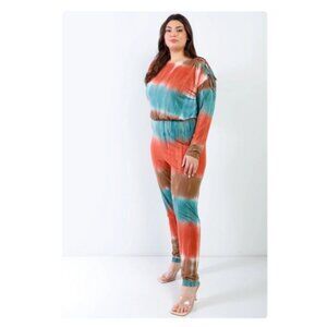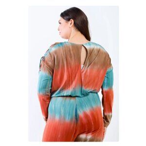 Plus Size Curvy Tie-dye Lace Up Shoulder Details Jumpsuit 1XL