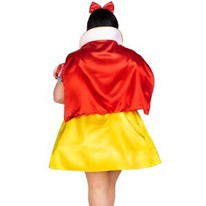 Who's the fairest of them all? You are of course! Just avoid apples for a while. Plus Size Fairytale Snow White costume includes cold shoulder velvet and satin dress with attached cape and matching bow headband. Fishnets, gloves and petticoat sold separately.
