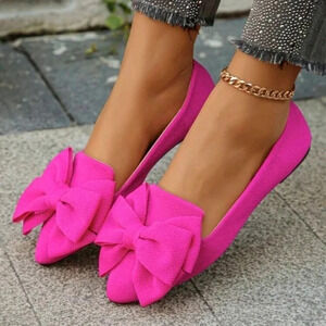Plus Size Fashionable Sweet Butterfly Knot Pink Flat Shoes, Pointed Toe