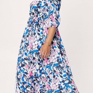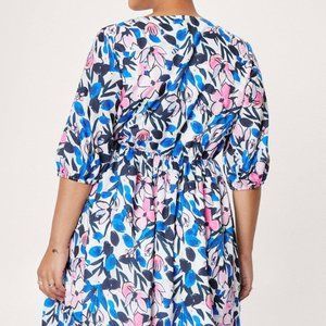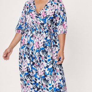 This plus size dress comes in satin and features a relaxed, maxi silhouette, V neckline, wrap design, floral print throughout, puff sleeves, and tie closure at side. Team with oversized hoop earrings and strappy stiletto heels.