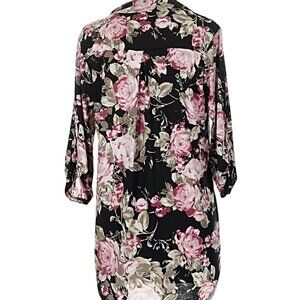 95% POLYESTER 5% SPANDEX THREE QUARTER BUTTON SLEEVE MANDARIN COLLAR FLORAL PRINT TOP