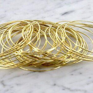 Features: This set of 44 textured bangles features a gorgeous gold plating on durable brass. No clasps—easy to slip on, with a sleek cable chain design that adds a subtle shine. Each bracelet measures about 3 inches in diameter with a slim 0.05-inch thickness.