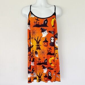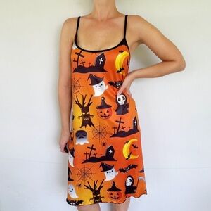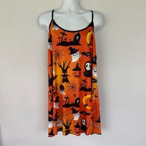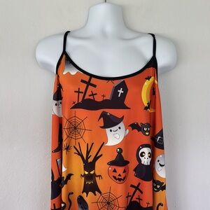 Plus Size Halloween orange black ghost print spaghetti strap dress size 5XL
