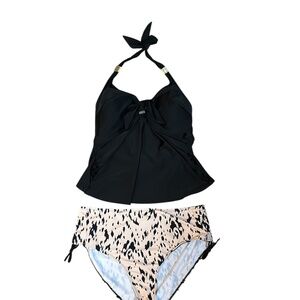 Plus Size Halter V-Neck Backless Swimsuit NWOT Size: 4X **TOP RUNS SMALL** 2 piece set Wireless bra High waist bottom with tie side