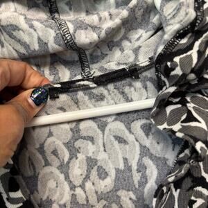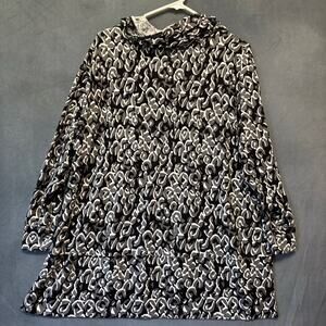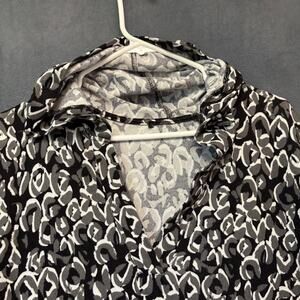 Plus Size Hooded Black White Abstract Animal Print Tunic Blouse 2X-3X No Tag