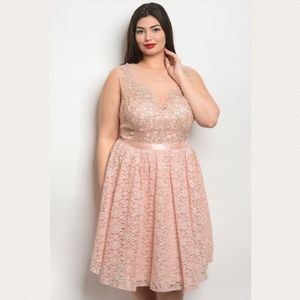 Plus Size Lace Blush Pink Formal Cocktail Dress