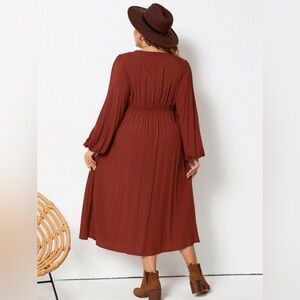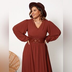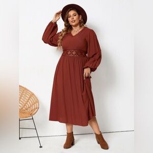Plus Size Lace Detail V-Neck Balloon Sleeve Dress