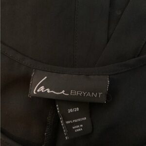 This Lane Bryant blouse features a chic flowing silhouette in a sophisticated black and silver palette. The sleeveless design adds a contemporary flair, making it a versatile addition to any wardrobe. Crafted for comfort, it offers a relaxed fit perfect for casual occasions.