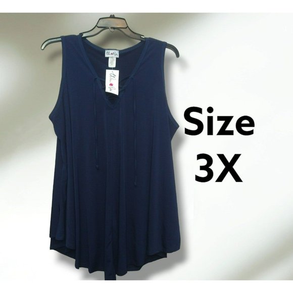 Plus Size Long Length Navy Blouse Size 3X with front v neck ties