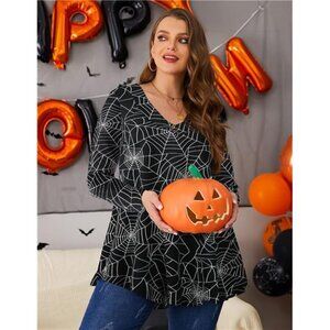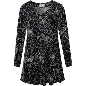 Plus Size Long Sleeve Tunic Top - V Neck Flowy Blouse for Women