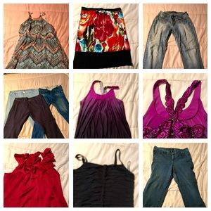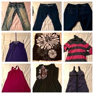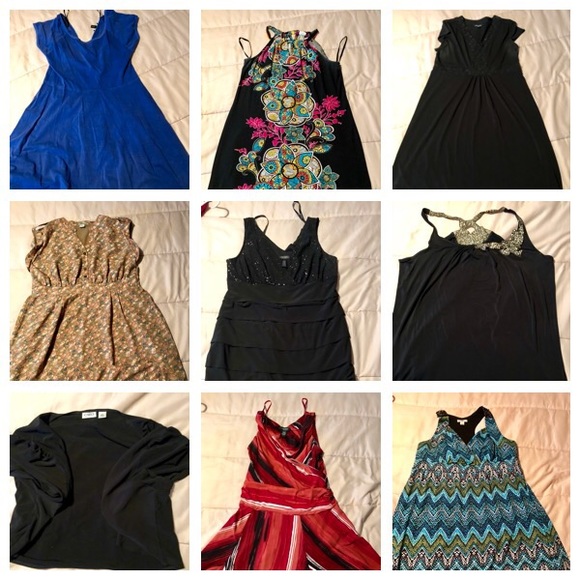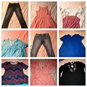 Mostly XL, some Larges that run big, and a couple XXL. 12 dresses 10 shirts 1 shawl 9 pants (16/18). Price is somewhat negotiable.