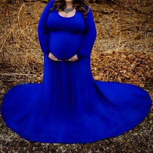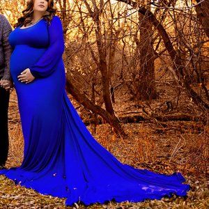 Gorgeous plus size maternity gown worn once for maternity pictures purchased from Etsy. This is a size U.S 3x. This includes the jersey gown and the split tail chiffon tossing train (not pictured, but can be seen at the below link). Beautiful soft stretch rayon jersey knit with a detached chiffon train to create a classic gown that fits effortlessly to your fabulously curvy figure and delivers sensational swish as you pose for photos. Toss the split train tail or let it pool around you for a glamorous look.