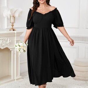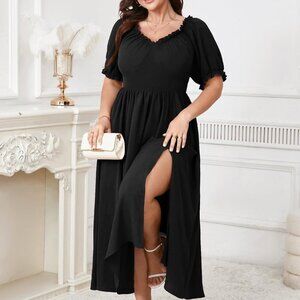 Plus Size Maxi Dress Women Summer V Neck Puff Short Sleeve Slit Formal