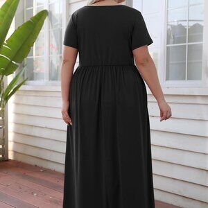 Features: The classic round neckline offers timeless appeal, while the loose, floor-length design skims curves gracefully for a universally flattering fit. A built-in elastic waistband gently hugs your natural curves and two deep side pockets add practicality to this plus size chic maxi dress.