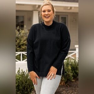 Plus Size Mock Neck Dropped Shoulder Sweater