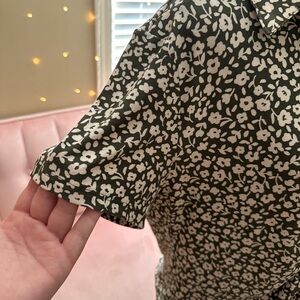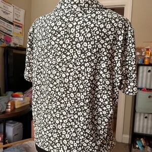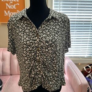 Chic and casual! Plus size no boundaries Cropped Top with buttons and an olive green and white bold floral pattern. Ideal for everyday style. It’s an XXXL and has stretch. It’s short sleeve with a color.