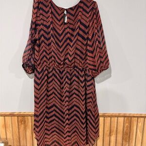 Elegant long sleeve dress with a striking chevron pattern. Features a comfortable fit and stylish design.