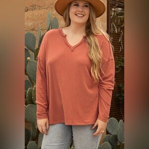 Plus Size Notched Long Sleeve T-Shirt