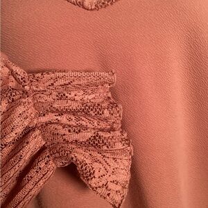 Plus Size, Pink Ruffled Long Sleeve Blouse with Relaxed Fit, Size 1X