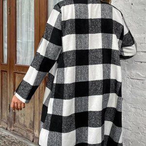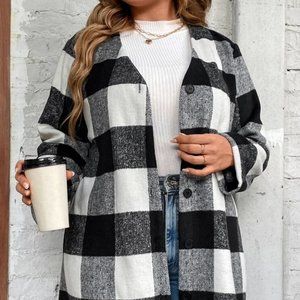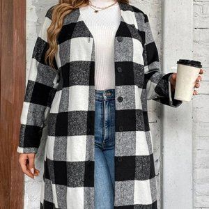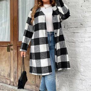Plus Size Plaid Button Down Front Flannel Coat Duster Jacket