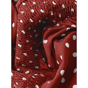 Make a statement in this elegant plus-size polka dot dress. The deep red color with classic white polka dots creates a timeless look, while the shirred waist and fit & flare silhouette flatter your curves.