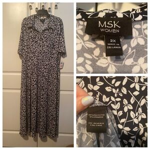 A sweet print lends a formal yet chic finish to this button front maxi by MSK, this plus size piece is perfect for transitioning from desk to dinner and drinks.