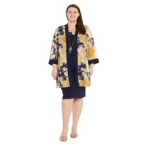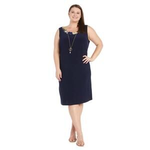 Plus Size R & M Richards Sleeveless Sheath Dress Jacket & Necklace 16W NWT