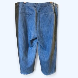 Stylish and comfortable women’s wide leg blue jeans with frayed hem. Perfect for casual wear in spring and summer.
