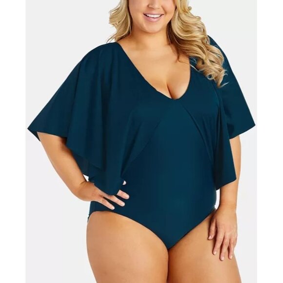 Plus Size Raisins Curve Stingray Swim Suit Teal Blue One Piece $98