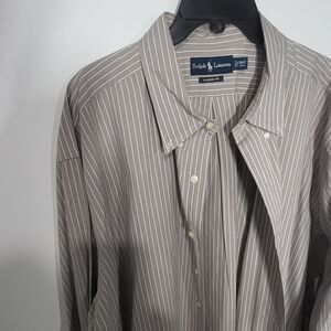 Elevate your wardrobe with the Ralph Lauren men's striped button down shirt. Size 3XL tall. 100% cotton. This classic piece offers a sophisticated look with subtle stripes. Perfect for both casual and professional wear.