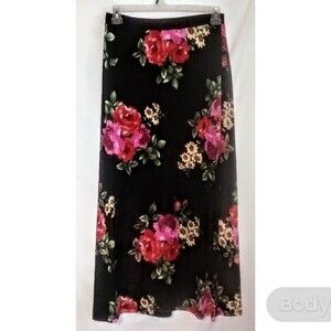 Brand new black skirt with full-length floral prints plus sized skirts with an elastic waist so it stretches with you. Underneath the skirt, it has shorts because you can see thru them. These are good for an evening out. These are good for an evening out. Description: LF: 40" LB: 16" W: 30" I.S.; 4"