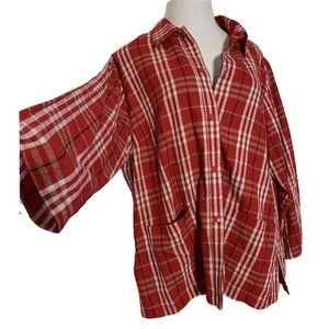 Plus Size Red Plaid Shacket Snap Front Country Shirt Jacket Long Sleeve 16W