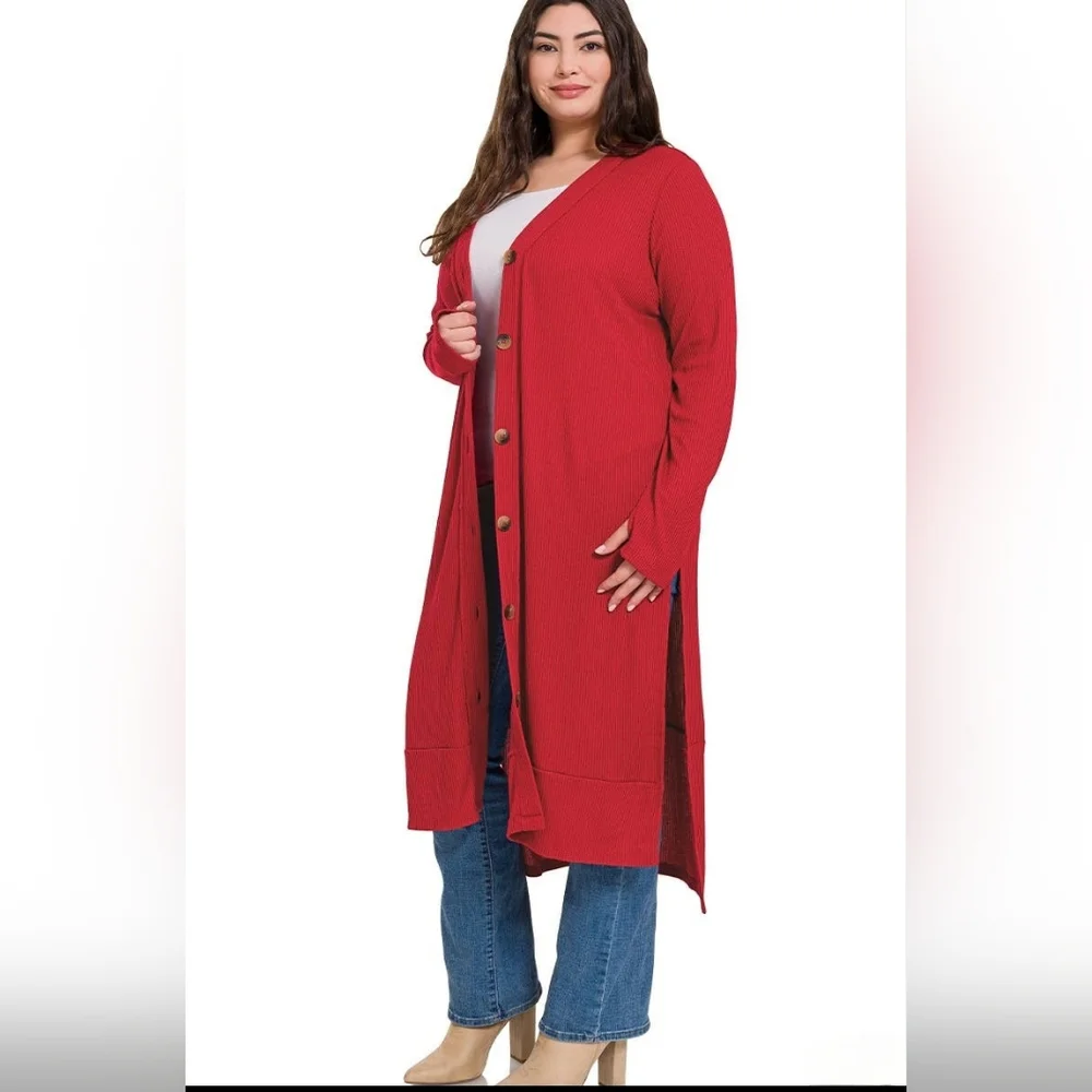 Plus Size Ribbed Cardigan Red