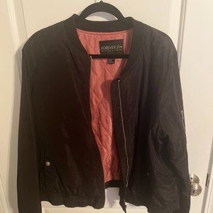 Forever 21+ - A woven bomber jacket featuring a flat collar, zip-up front, ribbed trim, long sleeves, and front slant pockets.