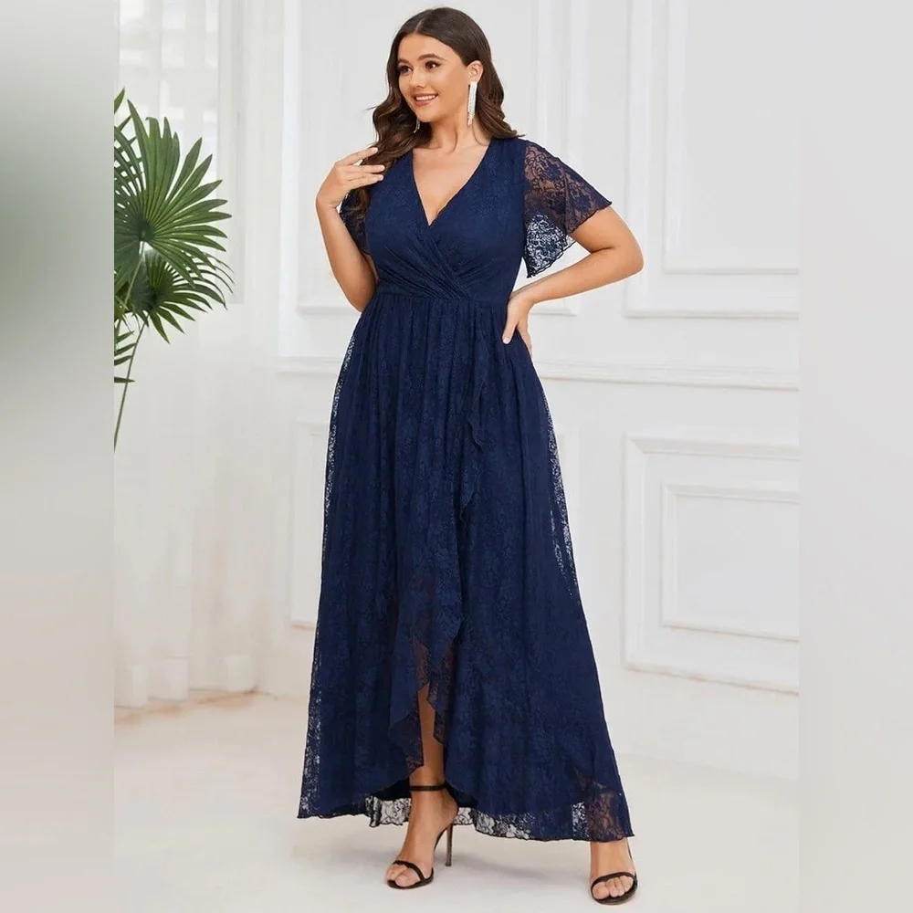 🆕 Plus Size Ruffled Lace Formal Evening Dress