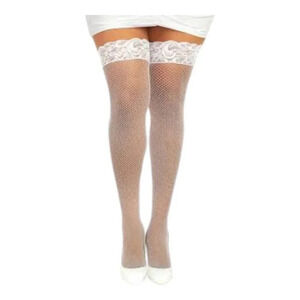 White Fishnet Thigh Highs