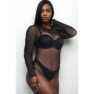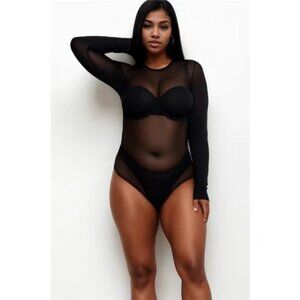 Plus Size Sexy Sheer Mesh Long Sleeve Bodysuit