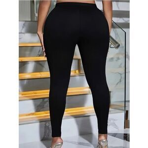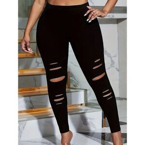 Plus Size Solid Color Ripped Skinny Leggings Stretchy Leggings Women’s 1XL