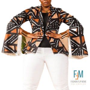 Plus Size Split-Sleeve Geometric Print Jacket - BOUTIQUE SAMPLE SALE