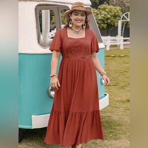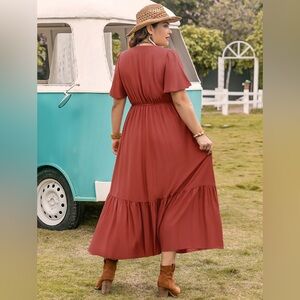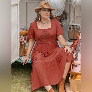 Plus Size Square Neck Short Sleeve Ruffle Hem Dress