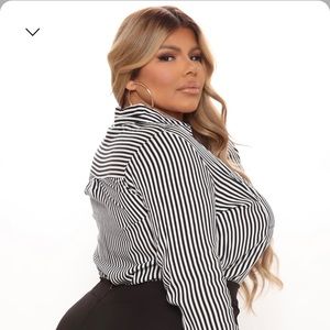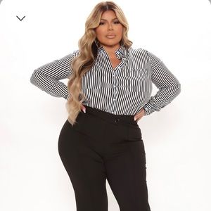 Super cute business casual striped button down shirt from fashion nova!