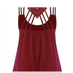 A stylish plus size top perfect for summer. Features a cami style with elegant lace detailing in the back. The top is made longer in the back for a flattering fit.