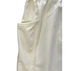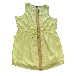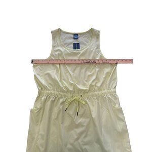 This beautiful Tek Gear Women's Sleeveless Tank Dress is a must-have for any woman's wardrobe. The dress features a scoop neckline and a pullover closure, and is made of a comfortable polyester and spandex blend that is woven to perfection. The dress is knee-length and comes in a lovely shade of yellow (very slightly florescent), making it the perfect choice for any casual occasion. The dress is designed with a cinch waist that adds a touch of sophistication to your look. The dress is available in size XXL and is perfect for plus-size women. The dress is a solid pattern and is perfect for those who love a classic look. Moisture wicking, 4-way stretch fabric. 2 side pockets. Scoop neck. Very lightweight. Polyester and spandex. See photos for measurements. Whether you're working out or running errands, you'll love the feel of this dress. New with tags.