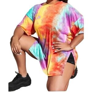 Plus Size Tie Dye Print Slit T-shirt Sz 2X