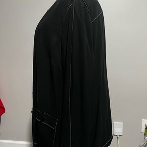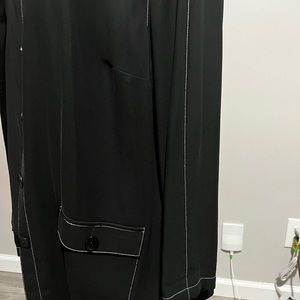 Matching jacket and tank. L/S with white stitch accents. Button front with large buttoned pockets. Removable shoulder pads. The jacket is a size 20 and the tank is a 22. Tri acetate and viscose. Preowned. Excellent condition.