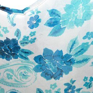 Effortlessly flattering, fluttery tank with high-low cut in sheer chiffon. Soft aqua base with floral paisley pattern in timeless shades of teal and turquoise. Perfect for warm weather or easy layering year-round.