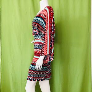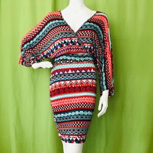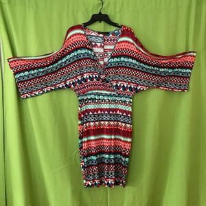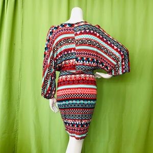 Plus Size Tribal Dolman Sleeves Red Printed Dress