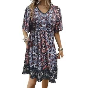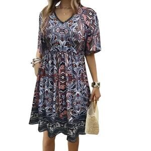 Plus Size Tribal Print Boho Dress 4XL (US 20) | V-Neck Lace Trim | Ethnic Patter