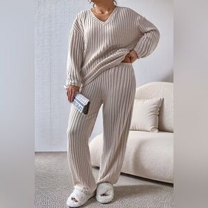 Plus Size V-Neck Dropped Shoulder Top and Pants Set