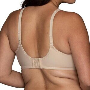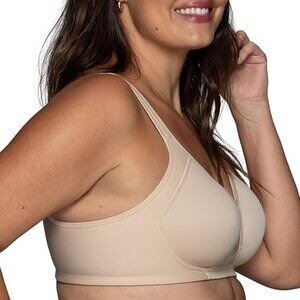 Plus Size Vanity Fair(R) full figure sports bra features a wirefree construction with foam-lined contour cups, wide back wings for a bulge-free look, and a brushed cotton underband that eliminates chafing. Two way back adjustable straps convert to traditional or criss-cross for wardrobe versatility. Cups/Frame: 78% Nylon, 22% Spandex Mesh/Back: Polyester/Spandex.